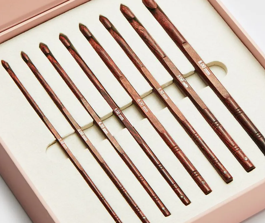 The art of crochet deserves artisan’s tools and this box of Symfonie Crochet Hooks more than qualifies. Nested inside a beautiful box are 8 of the most popular-sized wooden single-ended crochet hooks, each hand-crafted by skilled artisans for smooth, snag-free stitching.